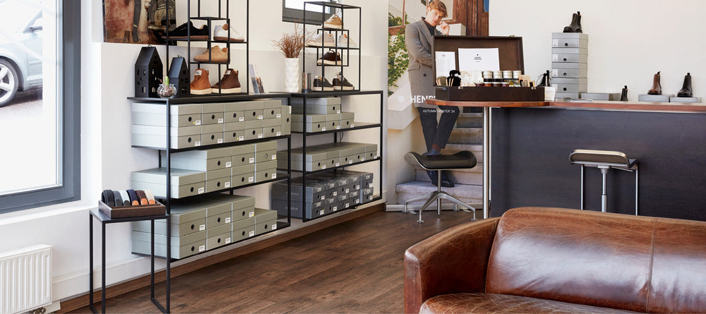 Formerly known as Heinrich Dinkelacker Factory Shop, our store in Bietigheim now offers much more than just the handmade masterpieces of Heinrich Dinkelacker. Here, you can also try out the latest sneakers from N91 and current season merchandise from Henry Stevens for women and men.